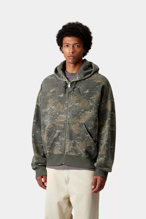 The Hooded Benton Sweat Jacket is made in a boxy loose fit from unbrushed, heavyweight cotton jersey, which has been garment-dyed for a softer feel and complex color configuration. It features an adjustable hood as well as a kangaroo pocket. An embroidered Script Logo appears on the chest.