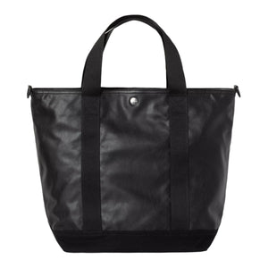 The Norwich Tote is a fully-lined item made from a PU-viscose material. The bag has a main compartment with a snap-button closure. Inside, the item has an additional zipped pocket. On the outside is a large front pocket. An artificial leather Square Label completes the design.