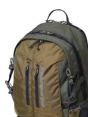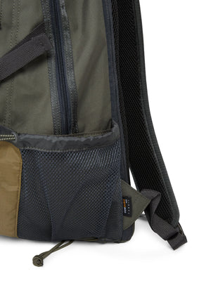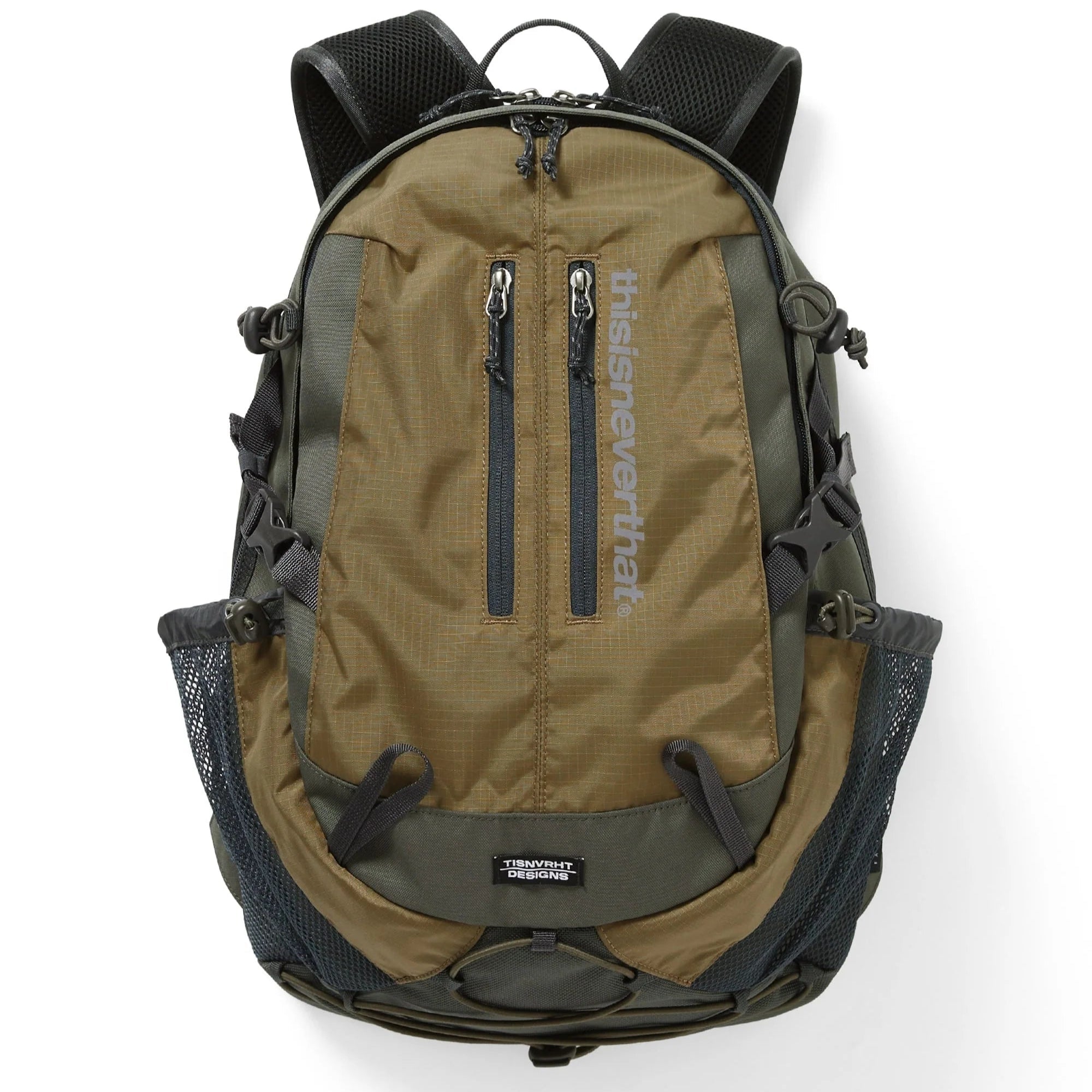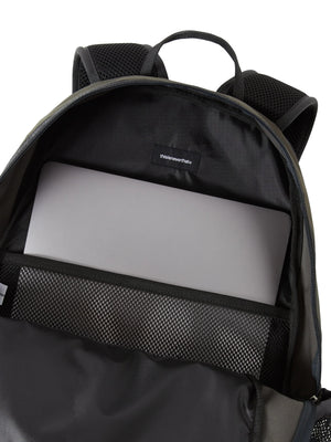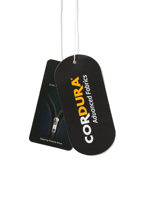 Cordura® 420D Polyester lining Top handle Front exterior pockets Side mesh storage pockets Laptop Compartment Multiple organizer pockets Dotted pull tab YKK #5 RC zip closure Printed logo on front Fits up to 19” laptop