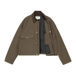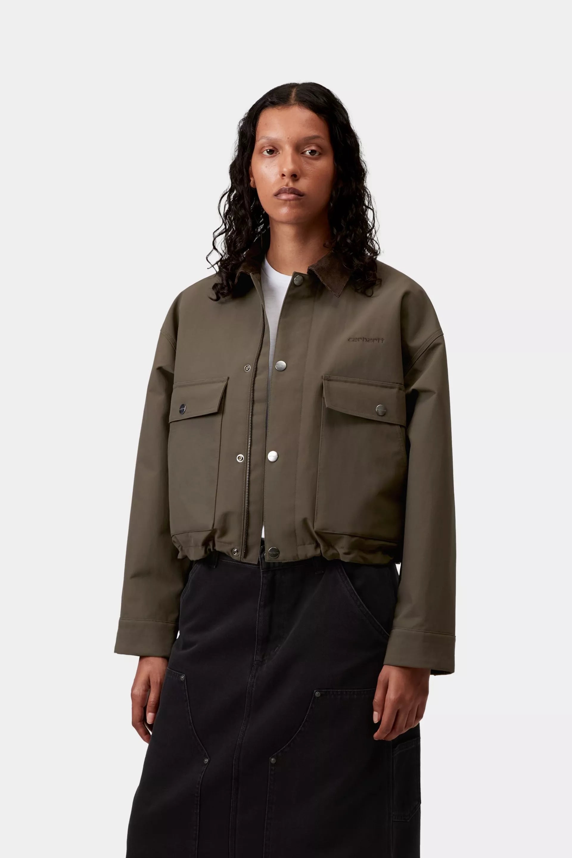 The Women's Dunham Jacket has a slightly boxy silhouette and is made from nylon fabric with water-repellent qualities. Two large patch pockets appear on the front. An embroidered Script Logo appears on the chest.