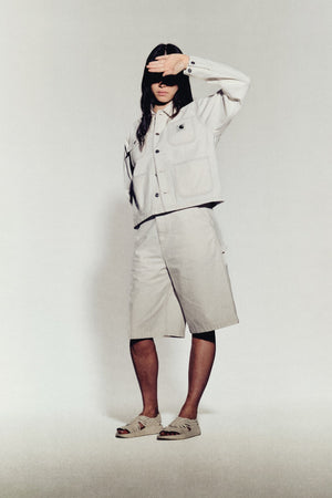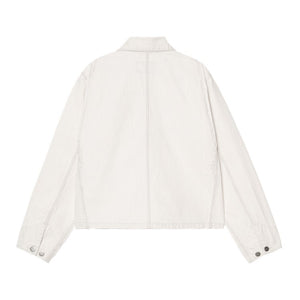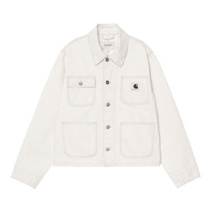 The Women's Mercer Chore Coat is made from a heavyweight, unlined cotton fabric featuring allover hickory stripes. The item features four front pockets on the front, one of which has a buttoned flap. The item is also detailed with bartack stitching at vital stress points. A woven Square Label completes the design.