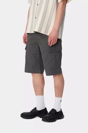 The Regular Cargo Short is constructed from a lightweight cotton ripstop fabric. This robust cotton has been rinsed for added comfort without sacrificing its durable qualities. Features multiple pockets and a woven Carhartt WIP label on the right leg pocket.
