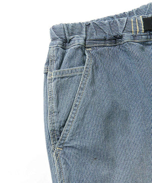 The Japanese Hickory Denim Work Pants are relaxed-feeling painter pants made from hickory cotton. Hickory denim has been used for workwear since the 19th century and is so named because it is "as strong as hickory wood." It has long been popular for railroad supplies and is still worn in freight yards today. The 8-ounce hickory is reassuringly strong, yet remains light enough for everyday summer wear. Combine the many pockets with a comfortable, roomy shape and you have a pair of work pants that are especially easy to wear.