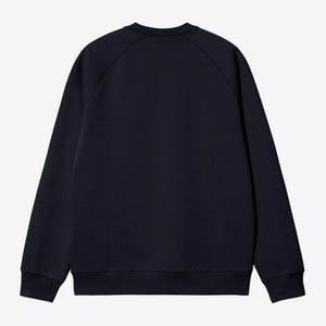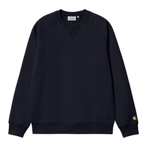 The Chase Sweatshirt is constructed from heavyweight polycotton fabric in a regular fit. The fabric has also been brushed, giving it a fleece-like backing. The item features raglan sleeves and is detailed with flatlock stitching. An embroidered 'C' Logo appears on the left sleeve.