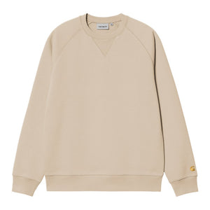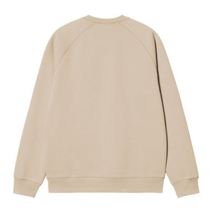 The Chase Sweatshirt is constructed from heavyweight polycotton fabric in a regular fit. The fabric has also been brushed, giving it a fleece-like backing. The item features raglan sleeves and is detailed with flatlock stitching. An embroidered 'C' Logo appears on the left sleeve.