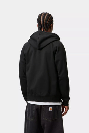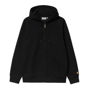 The Hooded Chase Jacket is constructed from heavyweight polycotton jersey in a regular fit. The fabric has also been brushed, giving it a fleece-like backing. The item features raglan sleeves and is detailed with flatlock stitching. An embroidered 'C' Logo appears on the left sleeve.