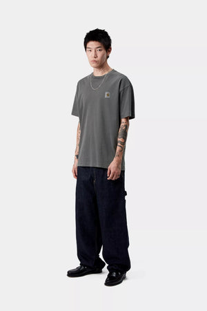 The S/S Vista T-Shirt is cut from midweight cotton jersey in a loose fit, featuring relaxed shoulders and a slightly longer hem. Additionally, the style has been garment-dyed, giving it a washed yet saturated hue. A woven Square Label, rendered murky by the garment-dyeing process, appears on the left chest.
