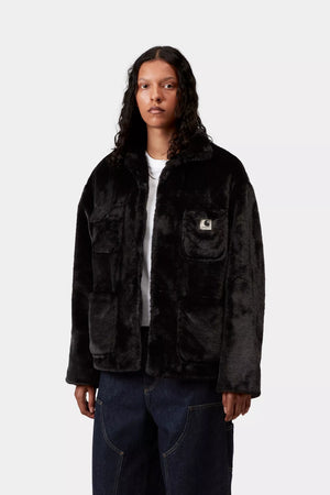 The Women's Olney Michigan Coat is made from a heavyweight artificial fur with a nylon taffeta lining. Four pockets appear on the front, one of which has a buttoned flap. A woven Square Label completes the design.