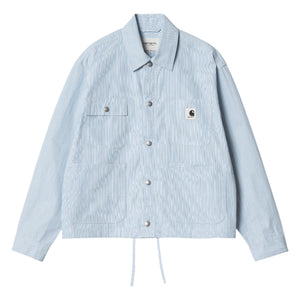 The Women's Nota Shirt Jacket is made from lined, lightweight cotton poplin. The item features two chest pockets and two lower patch pockets. Branded snap buttons appear on the front, as well as on the cuffs and chest pocket. A woven Square Label completes the design.