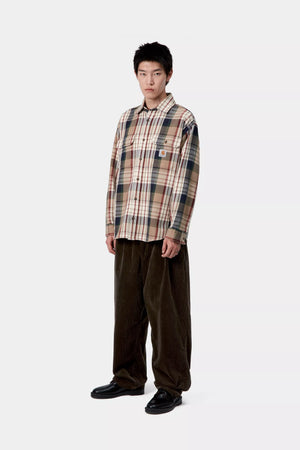 The Evan Pant is made in a loose tapered fit from midweight cotton corduroy with wide ridges. The item also has double front pleats for a roomier fit at the legs. A woven Square Label appears at the back.
