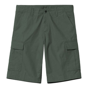 The Regular Cargo Short is constructed from a lightweight cotton ripstop fabric. This robust cotton has been rinsed for added comfort without sacrificing its durable qualities. Features multiple pockets and a woven Carhartt WIP label on the right leg pocket.