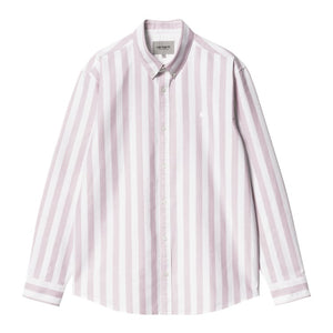 The L/S Dillon Shirt is made from lightweight Oxford cotton in a loose fit and has been garment-washed for a softer feel. It features allover stripes. An embroidered 'C' Logo appears on the chest.