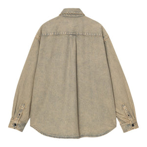 The Tigan Shirt Jacket is made from heavyweight, unlined cotton denim that has been garment-dyed for a softer feel and complex color configuration. The item features two buttoned chest pockets, one of which is accented with a woven Square Label.