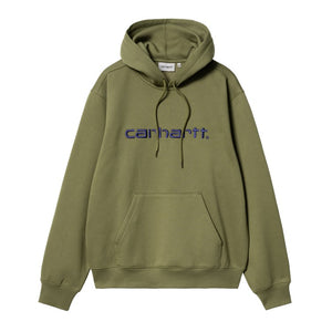 The Hooded Carhartt Sweatshirt is made in a loose fit from heavyweight, brushed polycotton jersey, meaning it has a soft fleece-like backing. It also features a kangaroo pocket, as well as a ribbed hem and cuffs. An embroidered Script Logo appears on the chest.