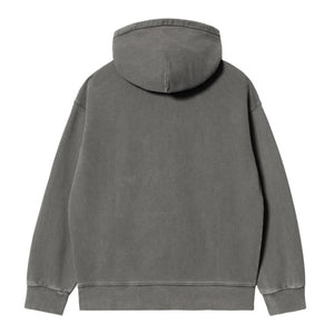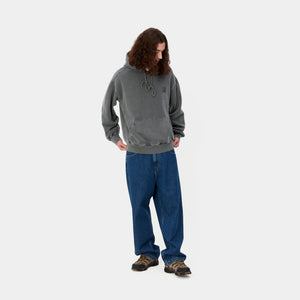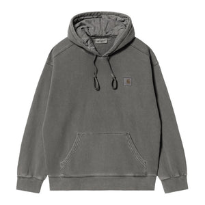 The Hooded Vista Sweatshirt is constructed from heavyweight cotton jersey, which has been brushed for a fleece-like backing. This style is cut in a balloon fit, which is a little looser and boxier, but also characterized by dropped shoulders and ribbed trims. Additionally, the style has been garment-dyed, giving it a washed yet saturated hue. A quilted and adjustable hood offers insulation, and a woven Square Label, rendered murky by the garment-dyeing process, appears on the left chest.