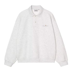 The WIP Label Polo Sweatshirt is made from a heavyweight cotton jersey with a brushed, fleece-like backing. The style is cut in a balloon fit, which is a little looser and boxier, but also characterized by dropped shoulders and ribbed trims. Graphic embroidery appears on the chest.