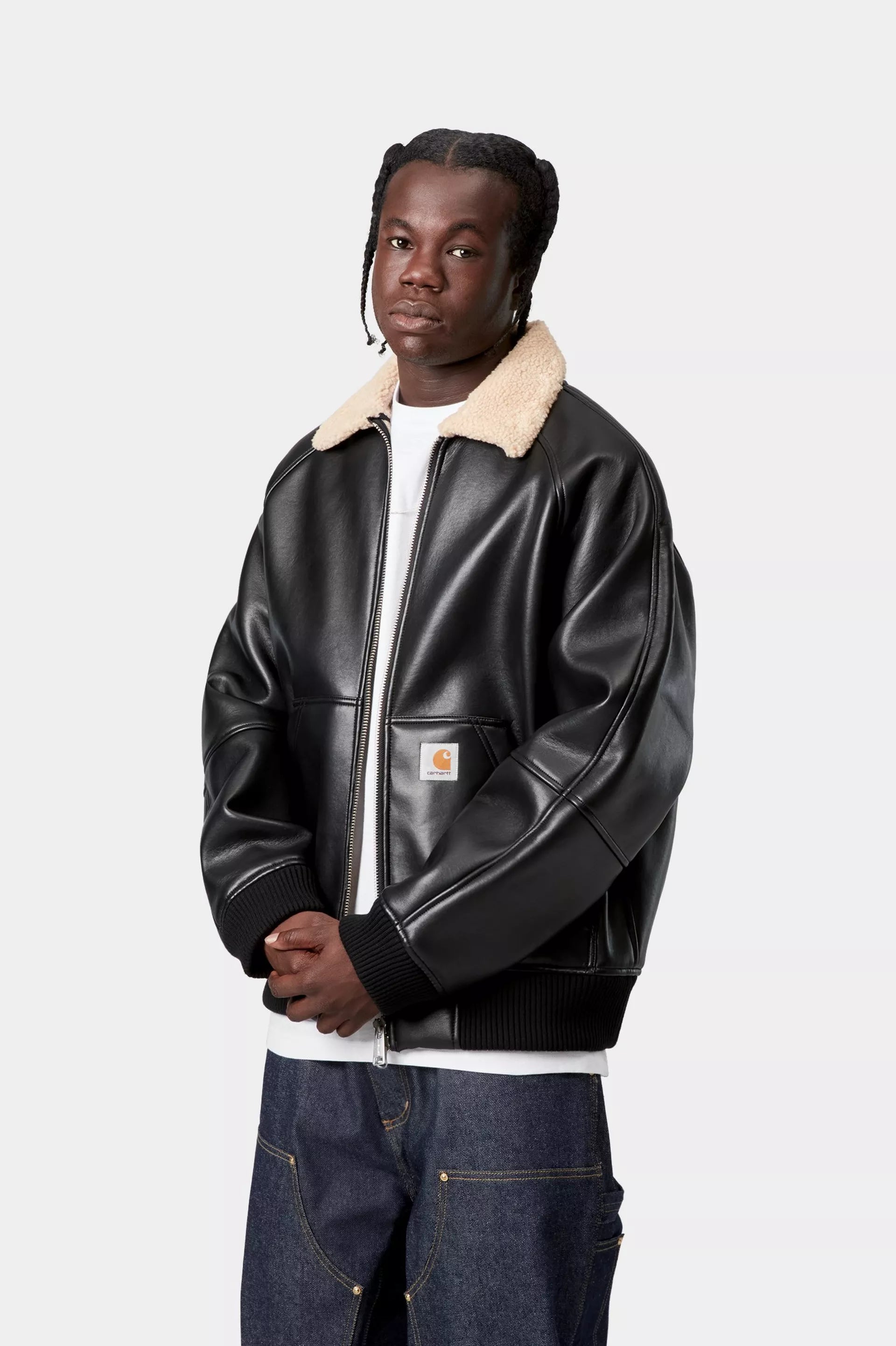 The Shepton Jacket is made from artificial leather with a pile collar and lining. It features a two-way zip, ribbed cuffs and a kangaroo pocket. A woven Square Label completes the design.